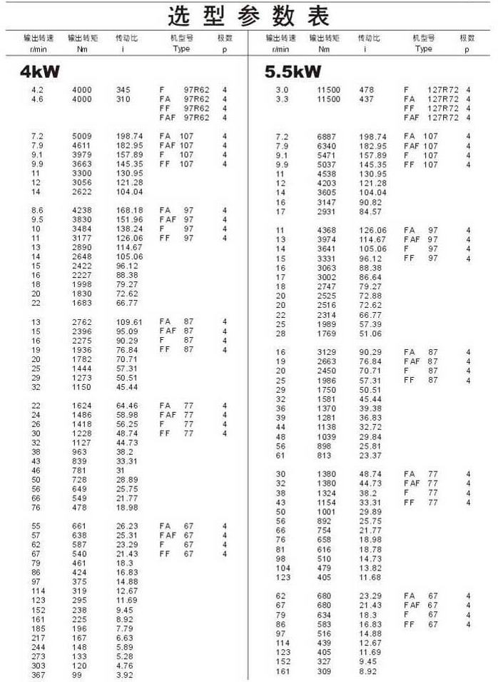選型參數表4kW(續),5.5kW