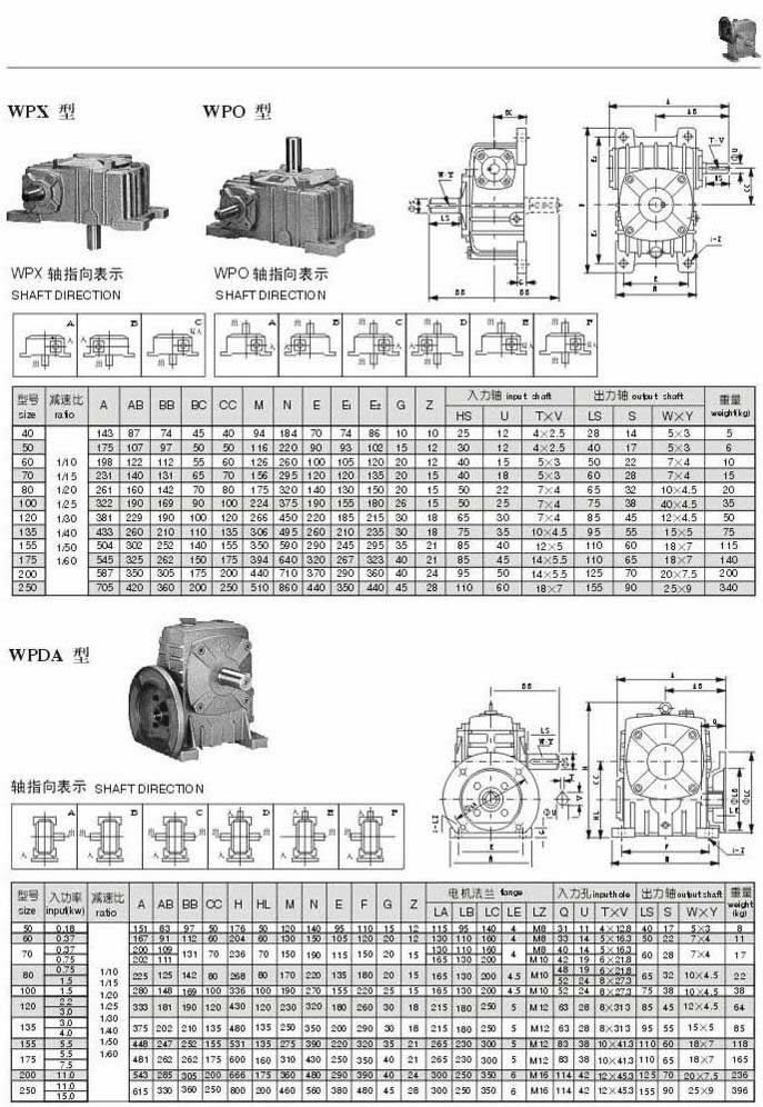 WPX,WPO WPDA型型號參數圖表