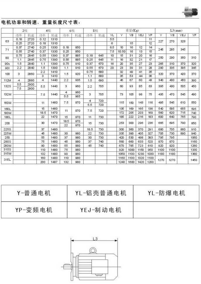電機功率和轉速.重量長度尺寸表電機代號