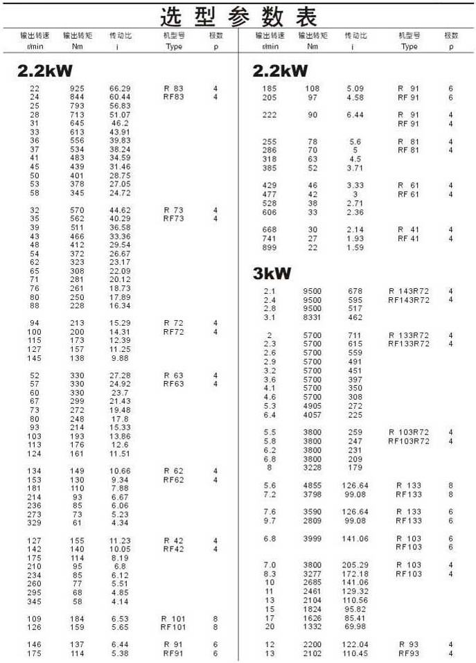 選型參數表2.2kW(續)和3kW